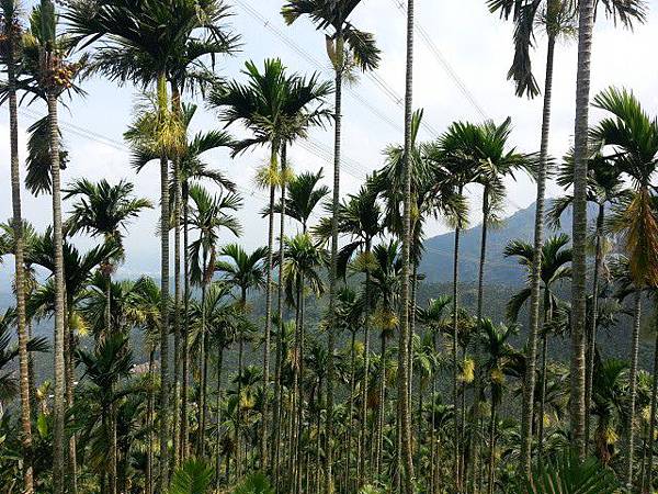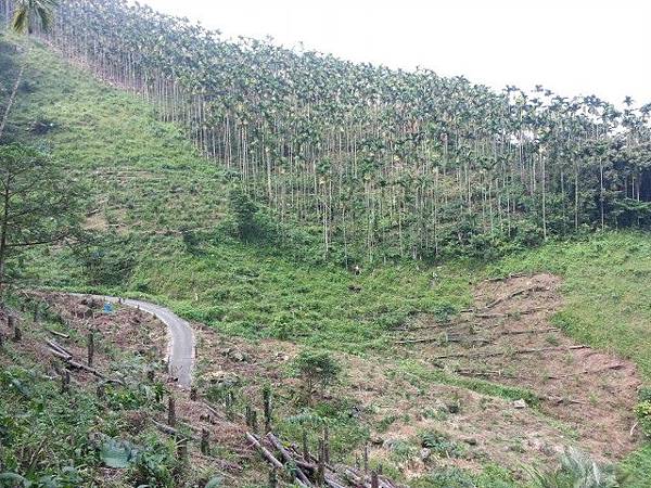 這次登山活動是探訪嘉義梅山的安靖古道,一路蜿蜒在這一大片的檳榔樹,讓人想起921的教訓,一棵棵高大的檳榔樹是嘉義的重要經濟作物,車行於嘉義竹崎、梅山路上,處處可見檳榔樹,這些瘦瘦高高的檳榔樹幾乎遍布滿山,嘉南地區大量栽種檳榔樹,檳榔樹會嚴重破壞水土保持,豪雨來時可能引發土石流。